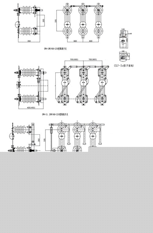 HGW4系列交流高壓隔離開關包括三個單極,每極為雙柱式結構,主要由底座、支柱絕緣子、導電部分組成。每極有兩個絕緣支柱,分別裝在底座兩端軸承座上,以交叉連桿連接,可以水平旋轉(zhuǎn)。導電閘刀分兩半,分別固定在支柱絕緣子上,觸頭的接觸在兩個瓷柱的中間。