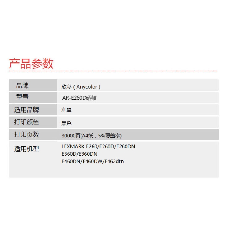 欣彩(Anycolor)E260鼓架(專業(yè)版)AR-E260D硒鼓 適用利盟E260 X22G LEXMARK E260 E260D E360D E462dtn
