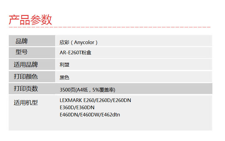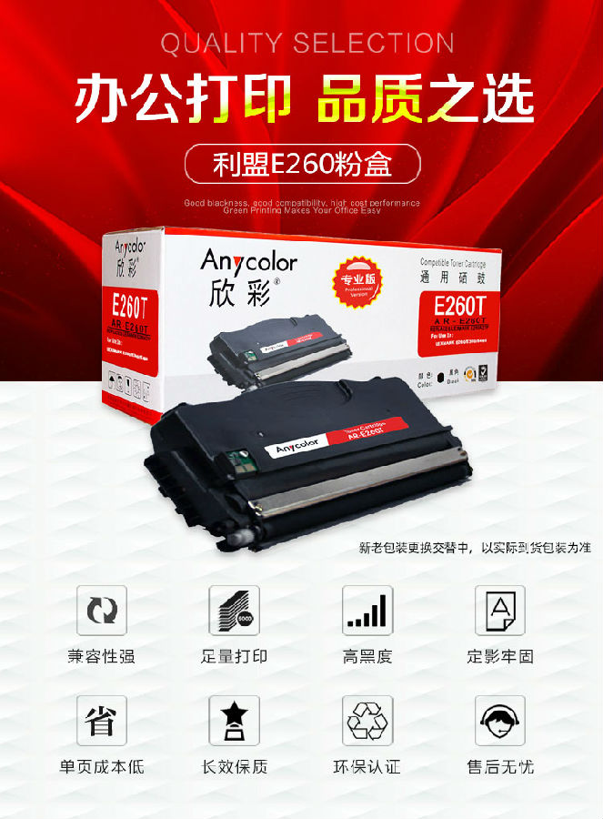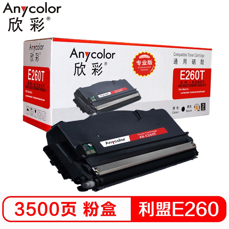 欣彩(Anycolor)E260粉盒(專業(yè)版)AR-E260T墨粉盒 適用利盟E260 A21P LEXMARK E260 E260D E360D E462dtn