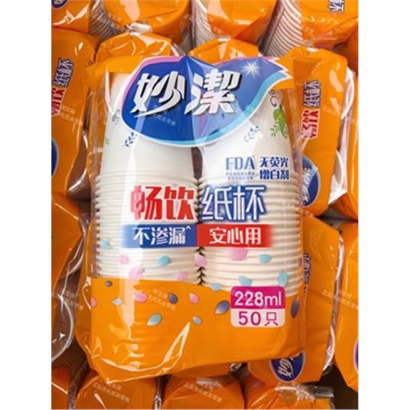妙潔 MDCB50 一次性杯子 一次性紙杯辦公室家用喝水咖啡茶杯熱飲航空杯子50只裝228ml
