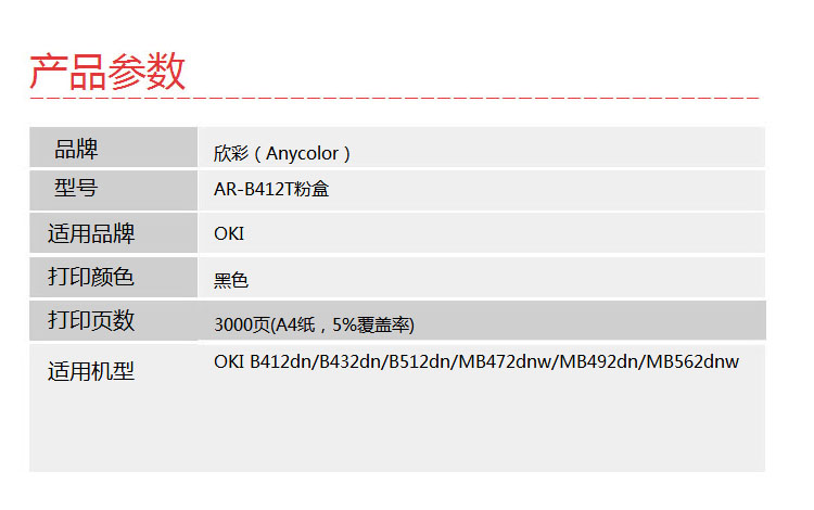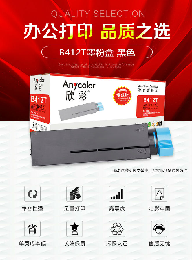 欣彩(Anycolor)B412DN粉盒(專業(yè)版)AR-B412T黑色墨粉盒 適用OKI 45807102 B432dn B512dn MB472dnw