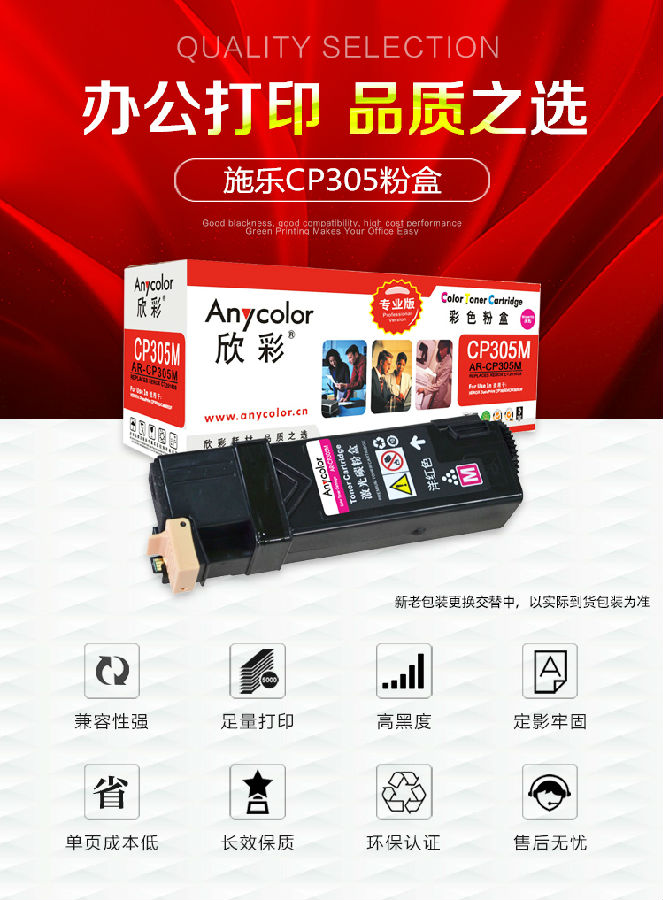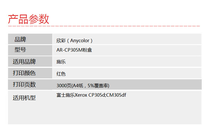 欣彩(Anycolor)CP305粉盒(專業(yè)版)AR-CP305M紅色 適用施樂 Xerox CT201638 CP305D 墨粉筒 耗材